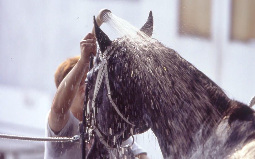 秘密の場所での一枚です。 夕日を浴びながらシャワーも思いっきり浴びまくっています。 ちょっとぐらい水がかかっても平気なのか、ややふせ目がちながらもしっかりと目を見開いていますね。 |