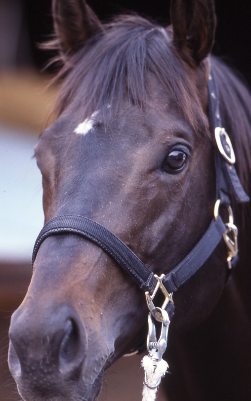 高田厩舎の前での一枚です。 といっても、どこで撮影したのかこれを見ただけではわからないですよね(^^;; 2枚下の作品と続けて撮った、というとわかりやすいでしょうか。 こちら側の目は白目部分がほとんど見えないため、比較的優しい印象を与えてくれると思いません? |