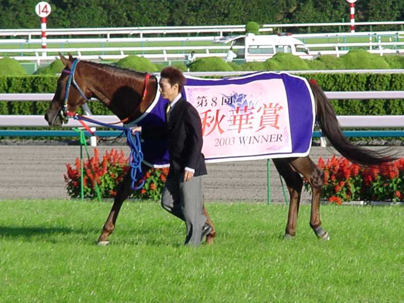 初めて一番人気を奪われたGIレースでついに初めてのGI制覇を成し遂げたアドマイヤグルーヴです。 このあともスティルインラブと良いライバル関係を続けていって欲しいですね。 |