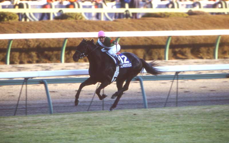 武豊をもってしても勝ちに結びつけることができなかった、現在日本一有名な競走馬です。 がんばってひた走る彼女。 勝利を挙げられる日はやってくるのでしょうか? |